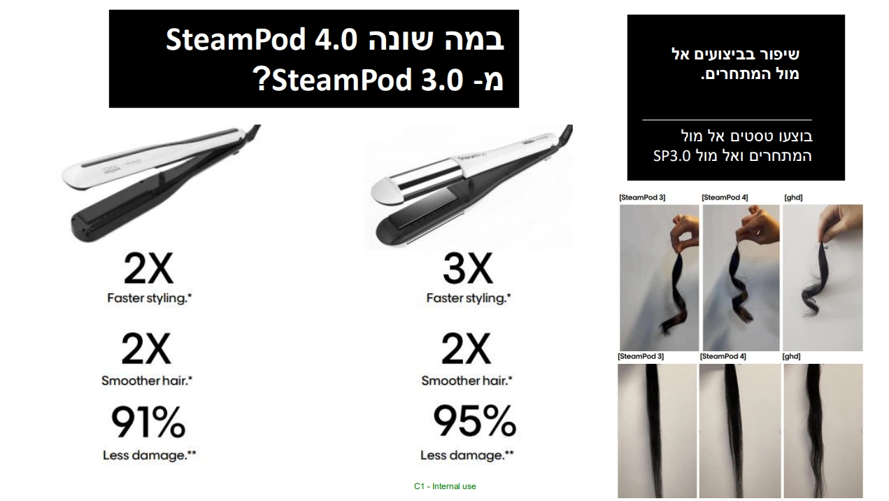 הסטימפוד קל לאחיזה, מהיר פי 3 ומעניק לשיער תוצאה חלקה פי 2 יותר ממחליק מסורתי.